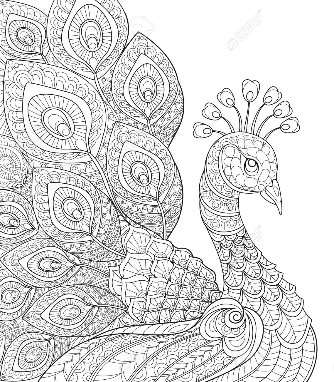 Zentangle Peacock With Ornament Super Coloring Peacock Coloring Pages Mandala Coloring Pages Coloring Pages